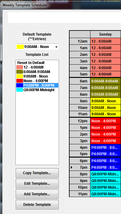 One day (Sunday) is shown as an example in Figure 1 showing a single day's worth of hourly templates in the Schedule Grid and within the Sunday.
