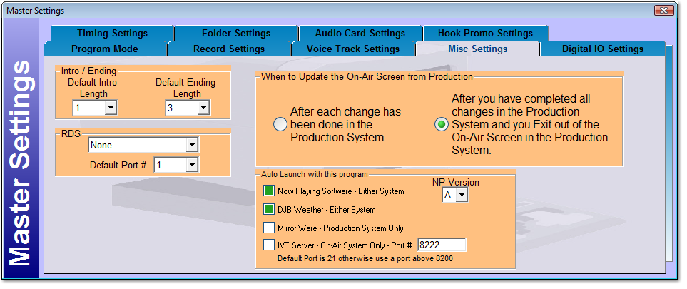 Now Playing can be launched on the On-Air or Production. We Suggest the On-Air System Only! See Now Playing Index for more details for Now Playing activation.