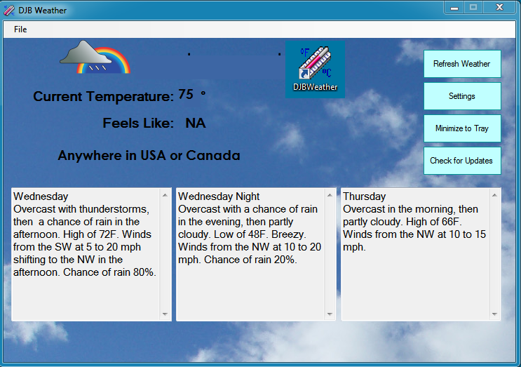The DJB Weather software runtime engine is used to update your local weather twice per hour. Sound Live and Local with DJB Auto Announce Weather.