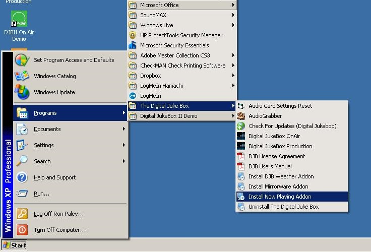 Go to the Windows START Button/Programs/The Digital Juke Box/Install Now Playing Addon