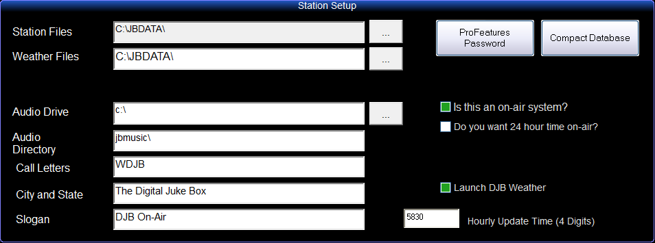 The Stations Files are in C:\JBDATA, so this is the first folder that needs to be backed up