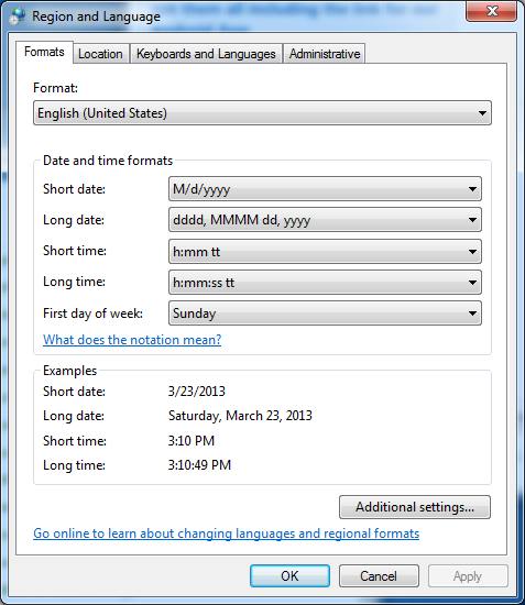 Our software uses the date and time formats of English (United states).