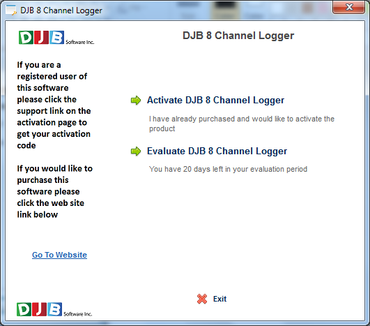 You can run in evaluation mode for up to 30 days. To do so, press the “Evaluate DJB Logger” button