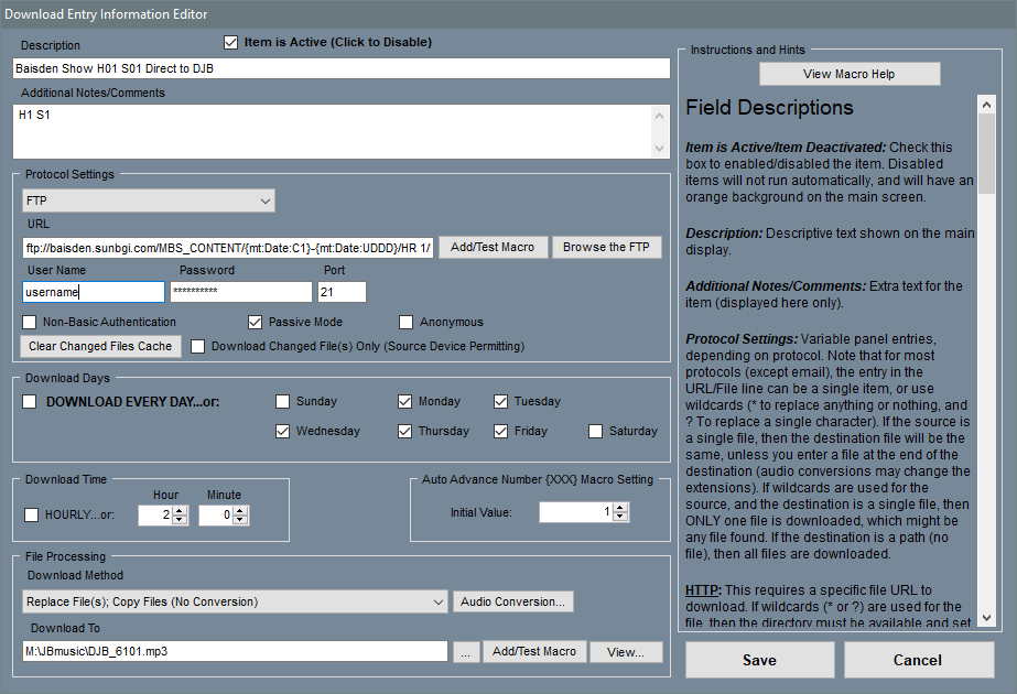· Download Changed File(s) Only: If checked, only files that have changed since the last run