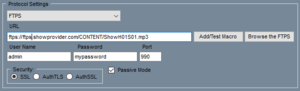 The settings Non-basic authentication, Passive Mode, and Anonymous depend on the destination server.