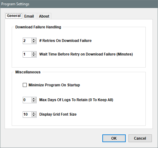 · # of Retries... If a file cannot be downloaded for whatever reason, it is logged as a failure;