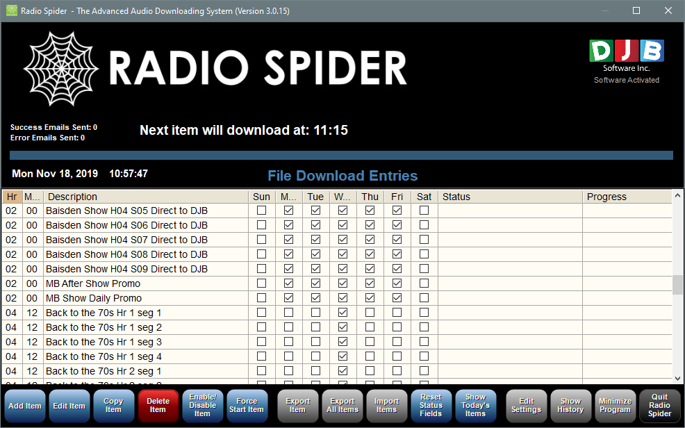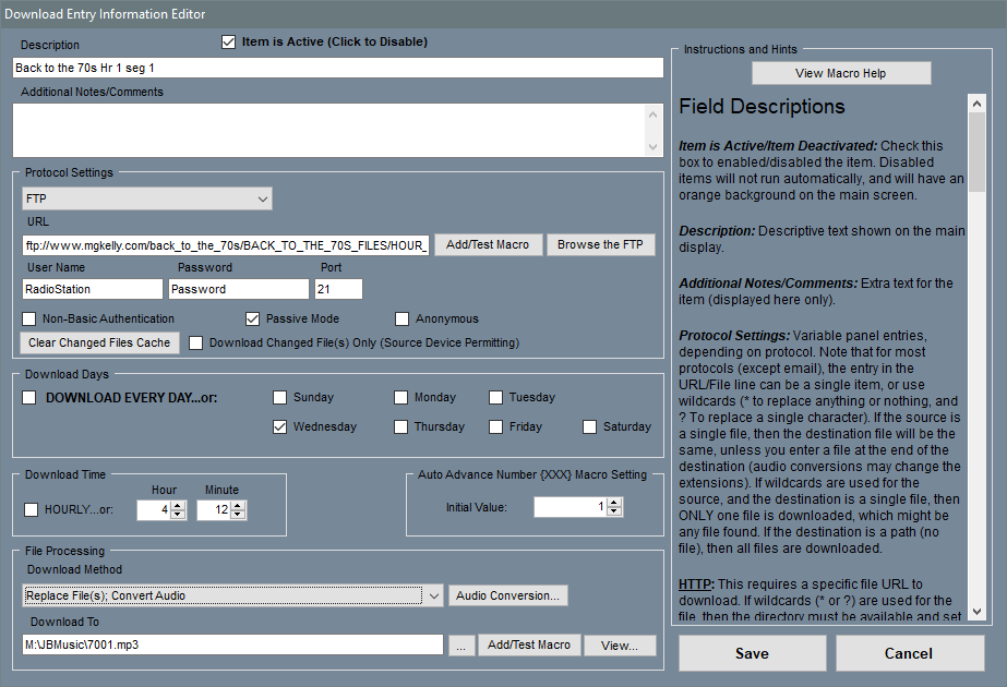 For example, if you need a file for a Monday broadcast, you may set up a download for Sunday only to get that file.