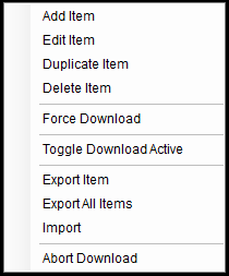 · Import Items. Used to import (add) items to the list that were saved from either the Export All Items or the Export Item options.