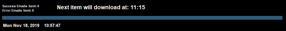 · Status message. The larger text display shows current events when running, and when the next item is scheduled to run automatically. If there are no more items for the next day, it will indicates that there are no more downloads for the day. Note that it only lists active events. Inactive events are not counted, since they will not run automatically.