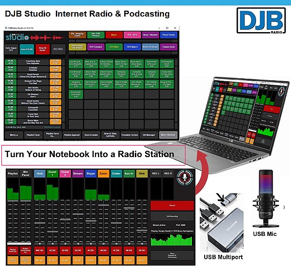 The illustration below shows the DJB Studio Player and the DJB Studio Virtual Mixer