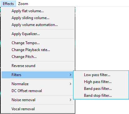 Figure 1: A pop-up mini menu appears with a selection of filters available. Select the Low-Pass Filter