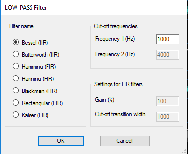 Main menu as in Figure 2 apprears with a large selection of proven Low-Pass filter algorythmns.