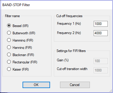 Each selectable Band-Stop filter has different effects on frequency and amount of attentuation. Experiment with each or for further